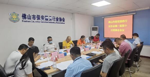 為推進佛山市保安服務行業(yè)協(xié)會換屆工作順利進行,7月8日下午,佛山市保安服務行業(yè)協(xié)會在協(xié)會二樓會議室召開第一屆理事會第十次會議,協(xié)會會長易志鋒、秘書長陳永共、第一屆理事會成員和協(xié)會相關工作人員參加會議。
